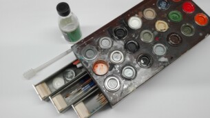 Diese unscheinbaren Hölzchen sind so ziemlich das Wichtigste bei der Bastelei. Zum einen dienen sie zum abwischen halbtrockener Farbe, aber auch zur Aufbringung von Klebstoff an schwer zugänglichen Stellen.
