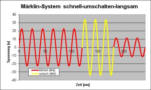 - Die Fahrspannung sollte nach dem PWM-Prinzip arbeiten, weil sich damit die Langsamfahreigenschaften der alten Märklin-Loks deutlich verbessern lassen.