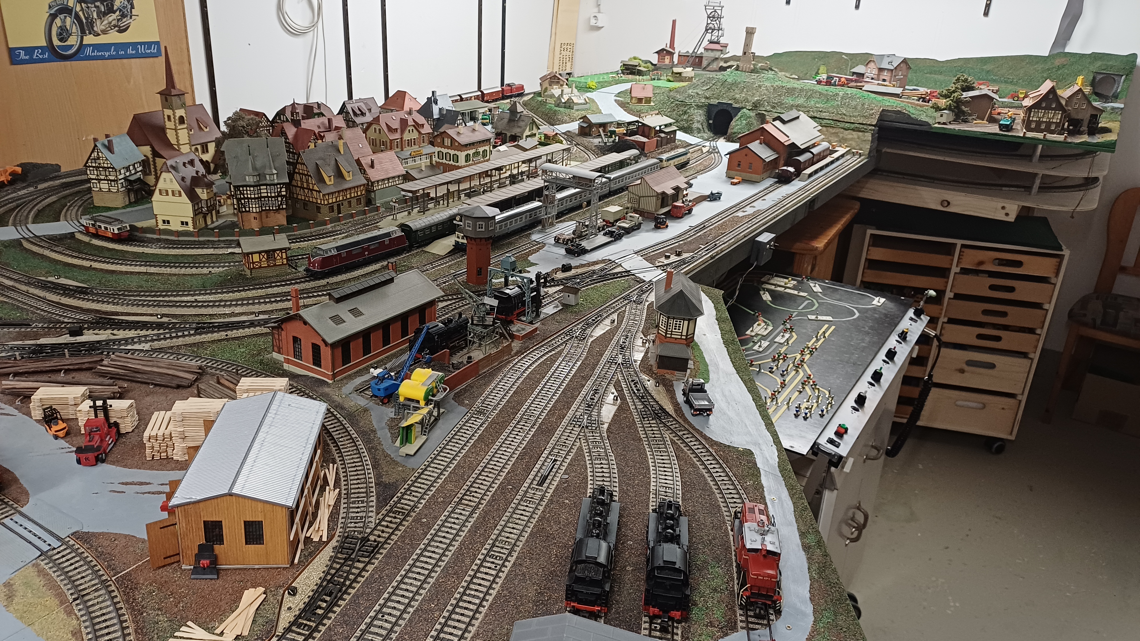 Geschafft! der Rohbau steht, die Gleise liegen und die Elektrik ist fertig. Und das Beste - es funktioniert auch, wie man sieht ...
