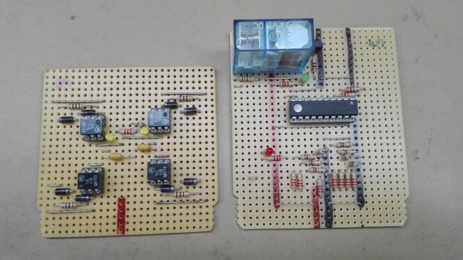 rechts die Abbildung der Platinen für Besetzmeldung und Schaltlogik