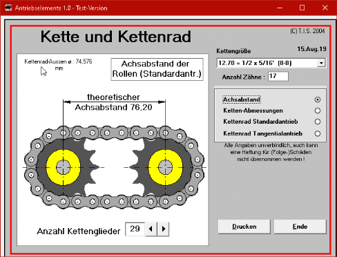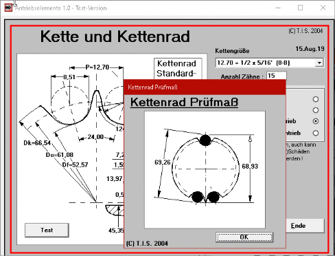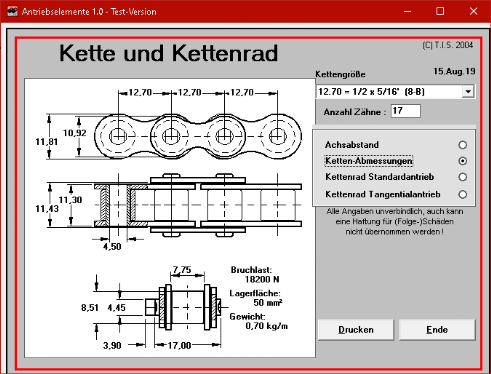 unten : Einige Tools aus der Fördertechnik:Anwendungen zur praxisnahen Berechnung von Antriebselementen wie Ketten, Zahn- und Rundriemen, Bahnlängen etc.