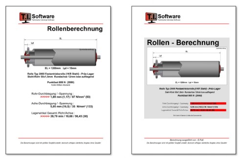 Hier als Beispiel eine Berechnung für Förderrollen. Die Highlights: