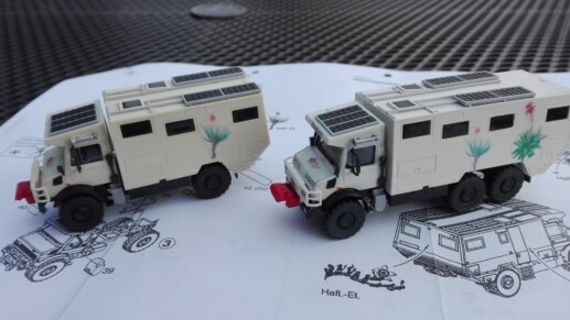 Exclusive Wohnmobile auf Unimog-Basis gibt es ja schon lange - auch als Kibri-Baussatz. Das Modell steht schon länger bei mir in der Vitrine. Weil Unicat aber auch eine 3-achsige Variante im Programm hat, juckte es mich in den Fingern so etwas nachzubauen.