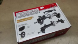 Dann - auf einem Motorradausflug - entdeckte ich in einem Modellbauladen den nebenstehenden Portalachsen-Satz und das noch zu einem akzeptablen Kurs, leider ohne schaltbare Differentiale. Also zu Hause nachgemessen und zugeschlagen.