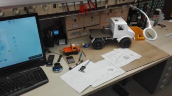 Wer den Bau-Bericht meines Unimog 416 verfolgt hat, weiß, dass nach dem letzten Umbau ein AXIAL SCX10 Chassis übrig geblieben ist. Dazu spendierte mir meine Frau den Bausatz für die Kabine des 435er von https://www.dt-c-rallye-racing.de. Von einem einschlägigen Kalenderblatt kam das Vorbild und das neue Projekt war geboren. Im Folgenden will ich den Aufbau etwas näher beschreiben, da sich gegenüber der originalen Ausführung des 435er von dt-c-rallye-racing doch einige Unterschiede ergeben.